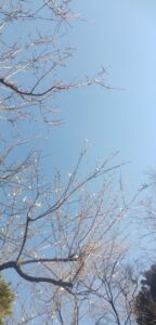 熱海では早咲きの桜が咲いていると聞いた。近くでも、歩いてみると、枝先に花がちらほら咲いている。